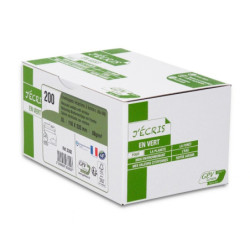 Papier 100% recyclé extra blanc 80 g, garanti sans chlore et d'une blancheur naturelle (cie 150). Passage machine offset garanti. Boîte charnière réutilisable et recyclable (sans colle, ni bande adhésive). Fermeture auto-adhésive par bande de protection. Boîte de 200 enveloppes. Produit certifié fsc.