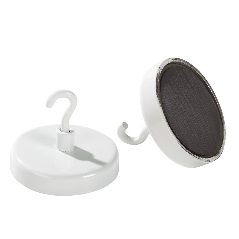 Le crochet se visse au support. Hauteur 3,2 cm. Se fixe sans percer sur toute surface métallique. Revêtement émaillé, coloris blanc.
