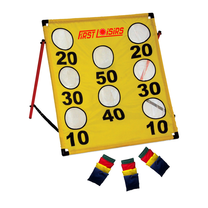 Placez les planches face à face. Préparez les équipes et lancez à tour de rôle. Marquez 1 point pour les sacs qui sont sur le plateau et 3 pour les sacs qui entrent dans le trou. La première équipe à atteindre 21 points remporte la partie.Contenu : 2 planches bois et 8 sacs - Dim. d'une planche (L x l) : 60 x 30 cm
