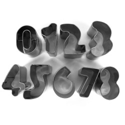Emporte-pièces chi?res : et 1, 2, 3 jusqu'à 9... Avec 5 symboles mathématiques (+, -, x, : et =). Pour s’exercer au modelage et à la technique de l’emporte-pièce ! Quatorze emportepièces chi?res en plastique, lavables et résistants. Dim. chi?re : 4 cm.