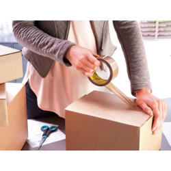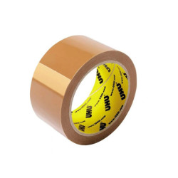 Ruban d'emballage en polypropylène, sans solvant. Se déroule sans bruit et se découpe facilement à la main. Adhérence élevée. épaisseur totale : 46 microns.