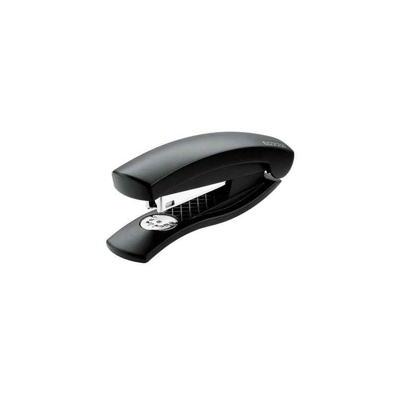 Plastique recyclé à 100%. 2 fonctions : agrafage et cloutage. Profondeur d'agrafage: 53 mm. Peut être utilisée horizontalement ou verticalement. Ouverture à 160° et système antiblocage. Capacité : 100 agrafes 24/6 ou 130 agrafes 26/6. Coloris noir.Max 20 à 25 feuillesRecyclé