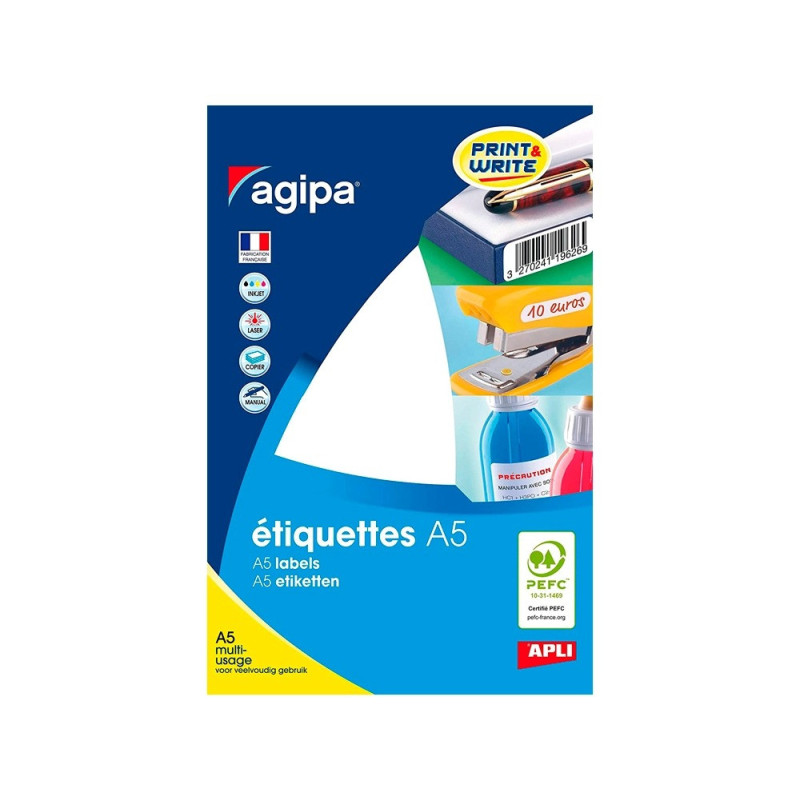 7 feuilles de 12 étiquettes de diamètre 45 mm, 4 couleurs par feuille : vert, rouge, jaune, bleu. Idéales pour le repérage, l’étiquetage, l’emballage. Pastilles rondes de couleur permettant le repérage sur des tableaux, plannings, inventaires, dossiers. Pour écriture manuelle ou à imprimer pour la réalisation de planches de tailles, codes ou prix. Papier certifié PEFC, adhésif permanent