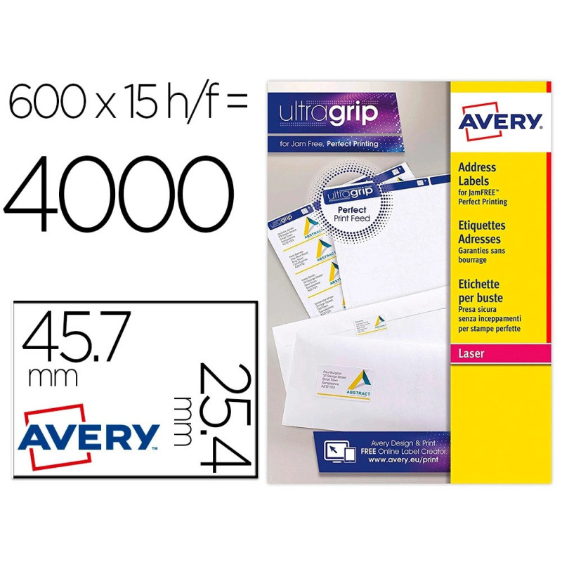 Etiquette autocollante avery adresse recyclee laser blanc 45,7 x 25,4mm boite de 4000.