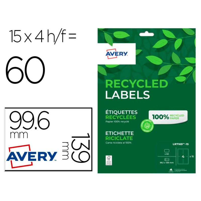 Etiquette autocollante avery adresse recyclee laser blanc 99,1 x 139mm boite de 60.