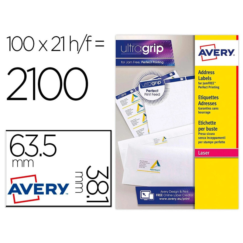 Etiquette autocollante avery adresse recyclee laser blanc 63,5 x 72mm boite de 1200.