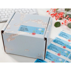Une fois l'étiquette collée sur un support blanc ou couleur, l'étiquette disparaît, seul le texte est visible. Coins arrondis. Boîte de 25 feuilles.