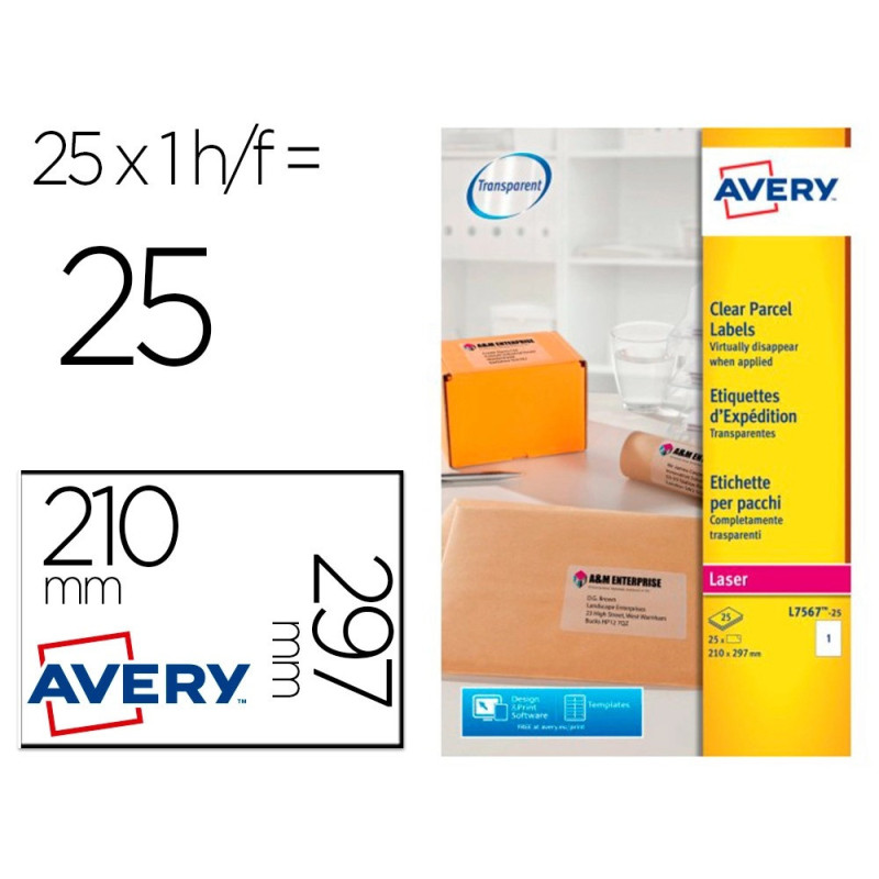 Etiquette autocollante avery expedition laser transparent210 x 297 mm boite de 25.