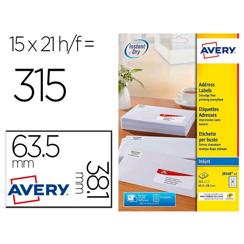Etiquette autocollante avery adresse recyclee laser blanc 63,5 x 38,1 boite de 315.