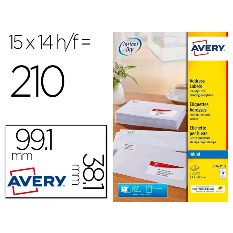 Etiquette autocollante avery adresse recyclee laser blanc 99,1 x 38,1mm boite de 210.