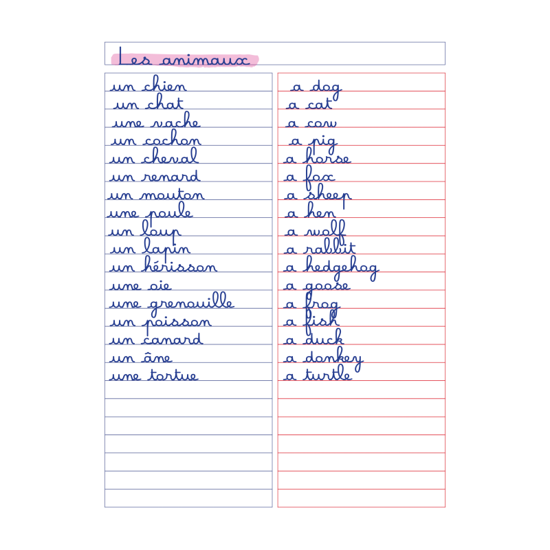 1 têtière - 2 colonnes de bordures différentes pour distinguer les langues. Couverture polypro transparente.
