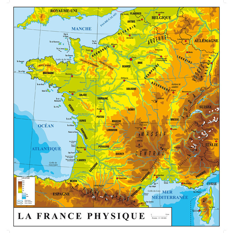 Carte murale plastifiée (42 µ) avec 2 oeillets métalliques - L’Europe des 27 : une face physique - une face politique, densité de population.Format 80 x 124 cm