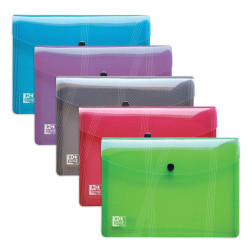 En plastique incolore, ouverture par le haut. Encoche de préhension par le haut pour retirer facilement les documents. 3 côtés soudés.