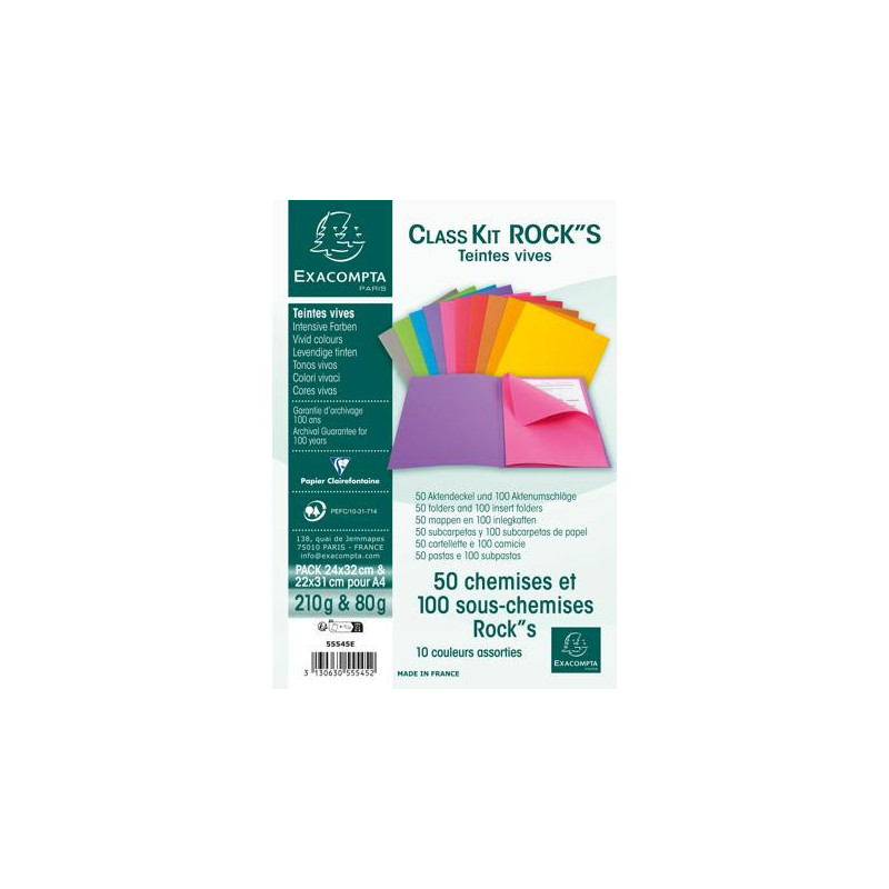Pack 50 chemises + 100 sous chemises ROCK''S pour A4 Couleurs assorties