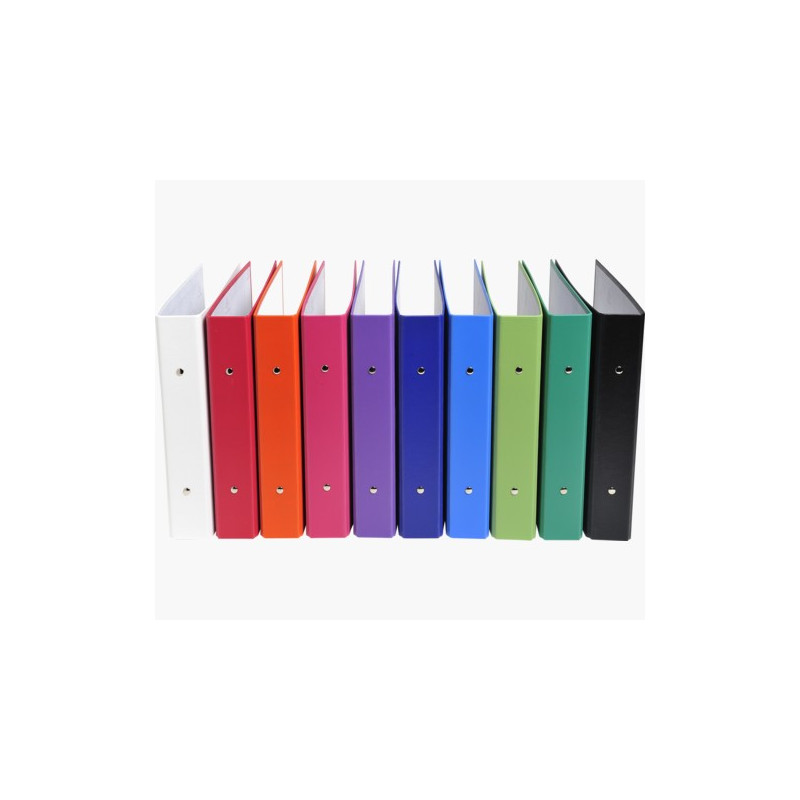 Dim. extérieures : 25 x 32 cm. Dos de 30 mm. 4 anneaux ronds Ø 20 mm. Polypro translucide 7/10ème.Le classeur - 5 coloris assortis : Bleu, rouge, vert, orange, violet (livraison selon arrivage).