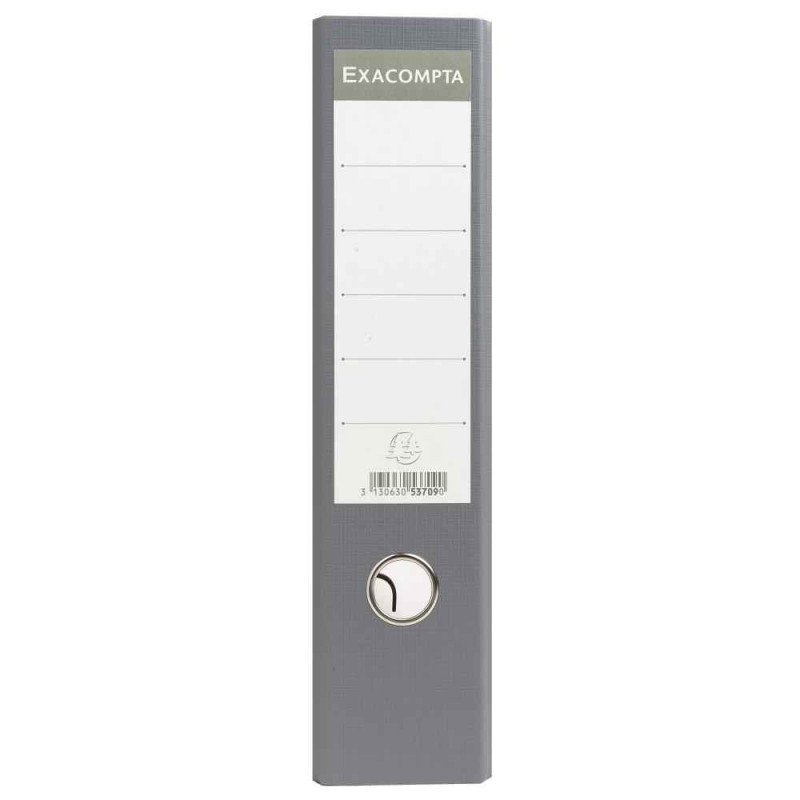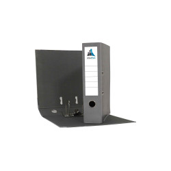 Format à classer A4. Dimensions extérieures : 32 x 29 cm. Plats papier marbré gris, dos imprimé, garde et étiquette imprimées, oeillets de maintien et de préhension, coins métalliques et renforts.