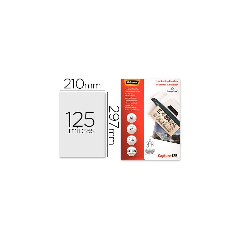 Pochette plastification fellowes à chaud polyester transparent résistant eau format a4 125 microns boîte 25 unités.