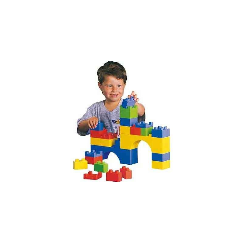 Boîte composée de briques géantes en plastique. Couleurs assorties. Les enfants pourront s’amuser et créer des compositions différentes. Livré en bac avec couvercle support de jeu et fiches modèles.