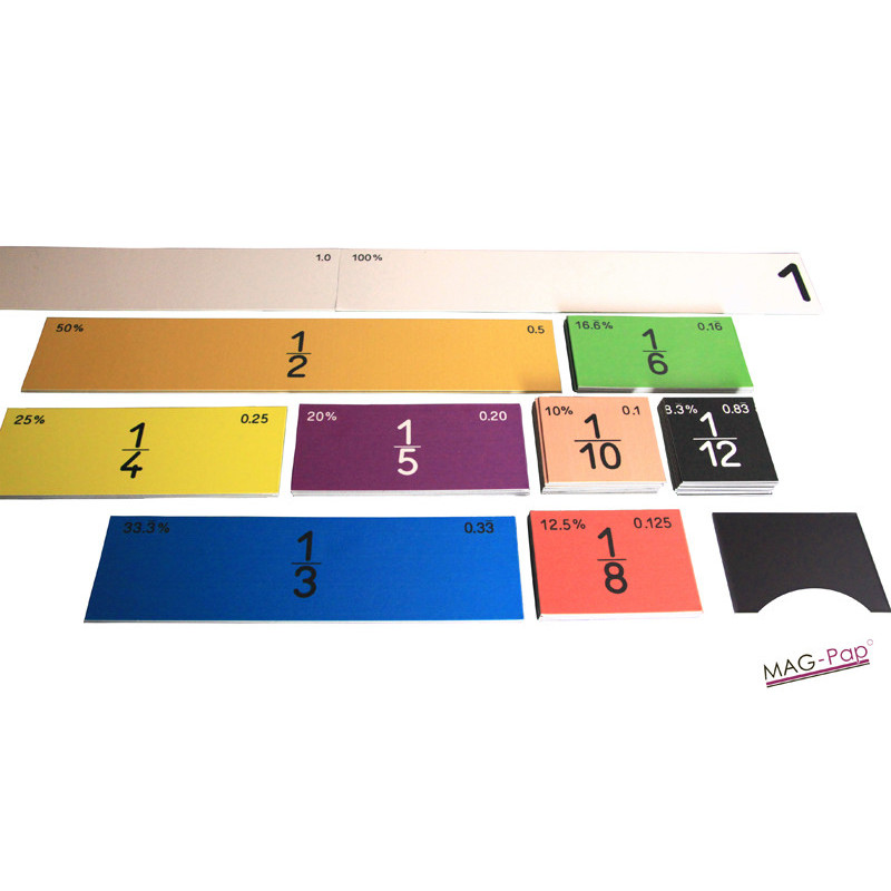 Pour créer des affichages visuels attrayants et interactifs démontrant les fractions et les équivalences.Contenu : 24 fractions de fruits dont des valeurs de 1 entier (kiwi), 1/2 (pastèque), 1/3 (orange), 1/4 ananas), 1/6 (noix de coco) et 1/8 (citron vert)