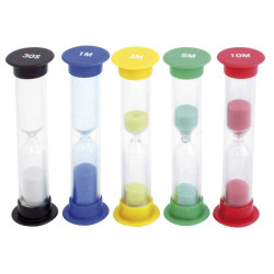 Les minuteurs surdimensionnés sont parfaits pour une utilisation partout où les enfants ont besoin d'aide à gérer le temps. Le sable coloré est coordonné avec chaque minuterie en plastique.Dim. (H) : 33 cm - Le lot de 4 sabliers (1 min, 2 min, 5 min et 10 min)
