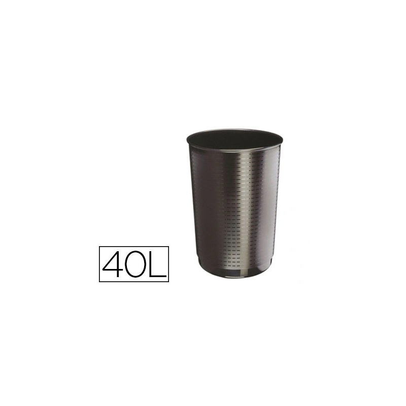 Décor façon tressé, paroi pleine. Souple et robuste, elle reste étanche et se manie très facilement grâce à sa légèreté. Capacité 40 litres, coloris Noir.Dim. : (H x Ø) : 49,5 x 38 cm - L'unité