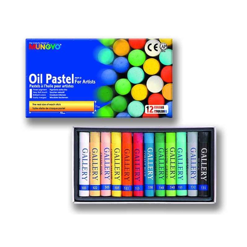 Pastels ronds. Pigments de couleur brillants et résistants à la lumière, tenant à l’eau. Excellent pouvoir couvrant. Long. : 67 mm - Ø 10 mm.L'étui de 12 - Coloris assortis