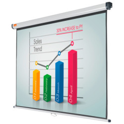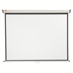 Ecran fixe, à mécanisme manuel, se déroule et s’enroule facilement dans son élégant carter en acier.Dim. (L x l) : 150 x 101 cm