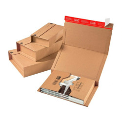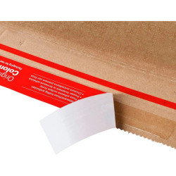 Protection renforcée aux coins et renforcement des arêtes sur le pourtour. Fermeture par bande adhésive. Ouverture rapide par bande d'arrachage. Livré à plat. Produit certifié fsc.