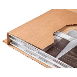 Protection renforcée aux coins et renforcement des arêtes sur le pourtour. Fermeture par bande adhésive. Ouverture rapide par bande d'arrachage. Livré à plat. Produit certifié fsc.