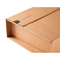 Protection renforcée aux coins et renforcement des arêtes sur le pourtour. Fermeture par bande adhésive. Ouverture rapide par bande d'arrachage. Livré à plat. Produit certifié fsc.