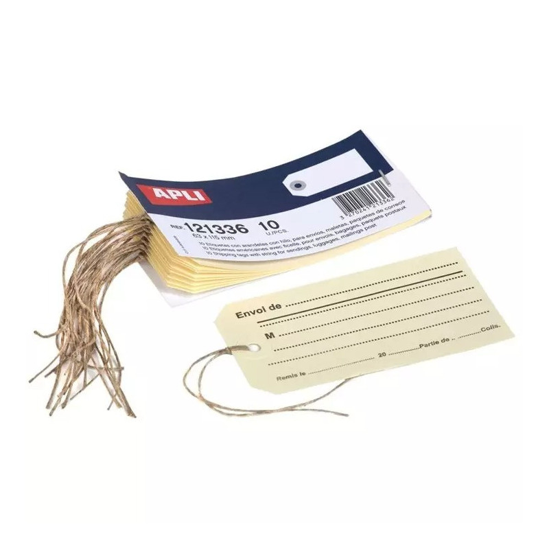 Étiquettes pré-imprimées avec ficelle individuelle de 250 mm.