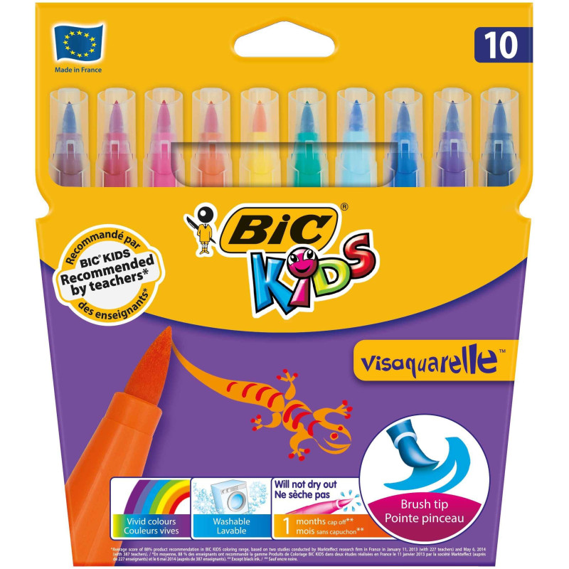Corps large coloré facile à tenir - Capuchon transparent ventilé - Encre lavable sur la peau et sur la plupart des tissus - Pointe pinceau bloquée ultra souple pour effet peinture - Couleurs assorties très vives - Ne sèche pas même décapuchonné durant 1 mois - Largeur de pointe : 4,5 mm - Largeur d’écriture : 1,7 mm.Le pot de 18 - Coloris assortis