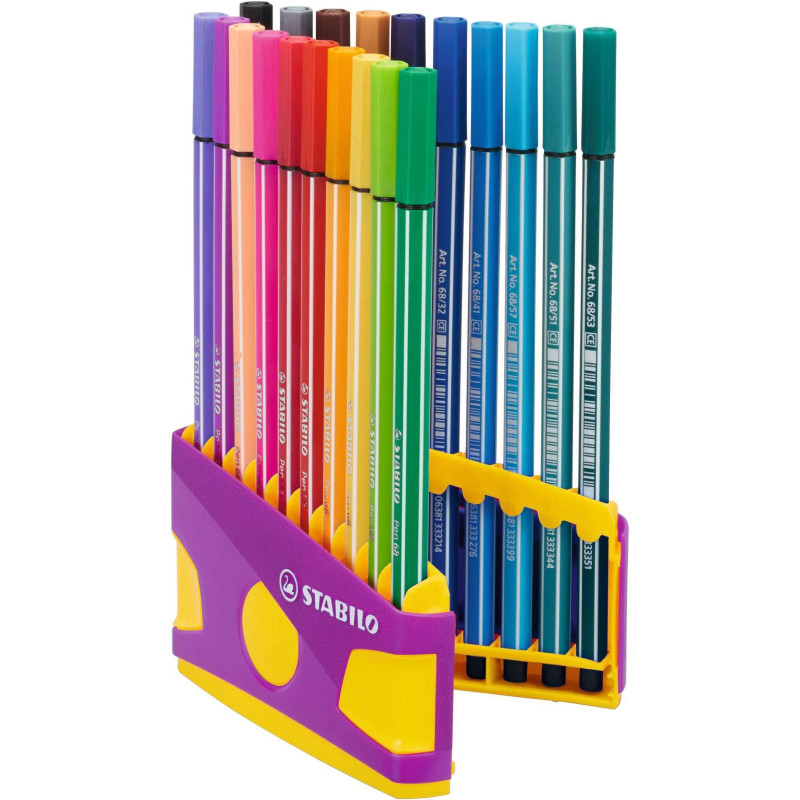 Feutre de dessin pointe moyenne, tracé 1 mm. Des couleurs éclatantes, la qualité beaux-arts. Permet de dessiner, de réaliser des aplats, mais aussi des effets d'aquarelle. Pointe ogive résistante. Peut rester ouvert 24 h sans sécher.L'étui de 10 - Coloris assortis