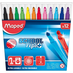 Capuchon ventilé sécurisé. Pointe large bloquée. 12 coloris.La pochette de 12 - Coloris assortis