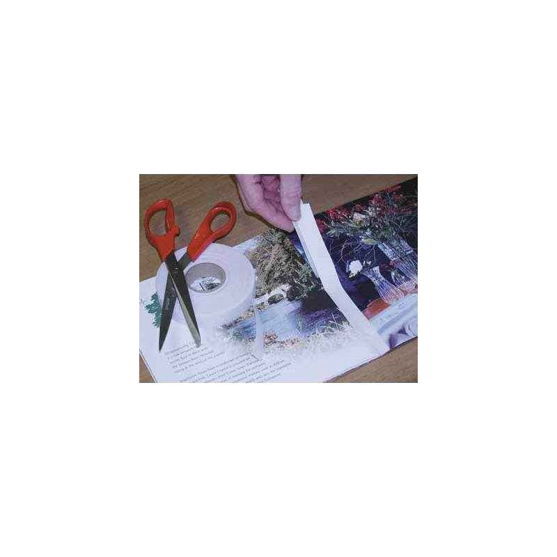Papier spécial longues fibres, sans bois, adhésif une face, PH neutre opaque, blanc, destiné à la réparation, protection et assemblage de papiers, confection d’onglets et de charnières. Enduit d’une colle acrylique exempt de solvant, élastique en permanence, résistante au vieillissement. Tamponné au carbonate de calcium pour la conservation des fibres de cellulose. Épaisseur 84 µ extra blanc opaque.50 m x 2 cm - Coloris blanc - Le rouleau sur dévidoir