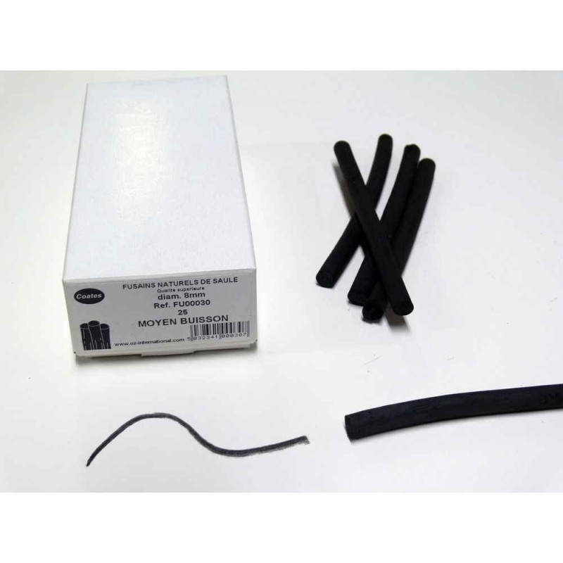 Pour apprendre le sens des nuances en noir et blanc. Fusain en saule naturel. Qualité extra fine. Fabriqué de façon artisanale. Excellente qualité pour son noir intense et sa texture tendre et veloutée.