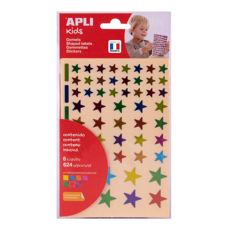 Tailles assorties - 8 coloris assortis - Pochette de 6 planches - 624 gommettesAdhésif repositionnable