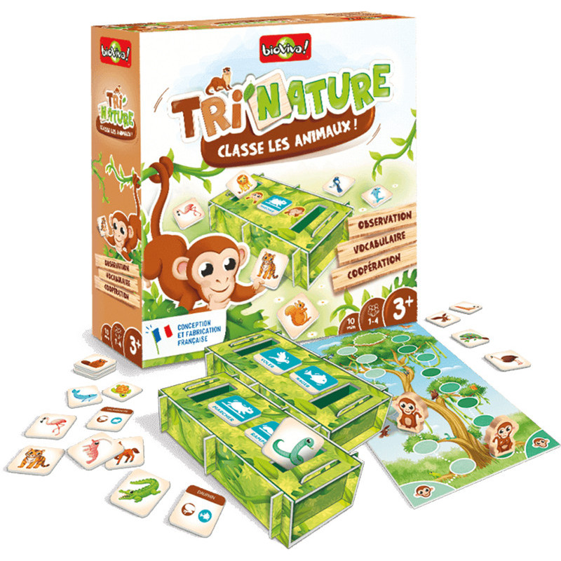 But du jeu : les animaux ont très envie d'un bon repas. Aide-les à trouver leur nourriture.Contenu : 4 pions en bois, 24 tuiles, 4 collecteurs 12 jetons et 1 livret pédagogique