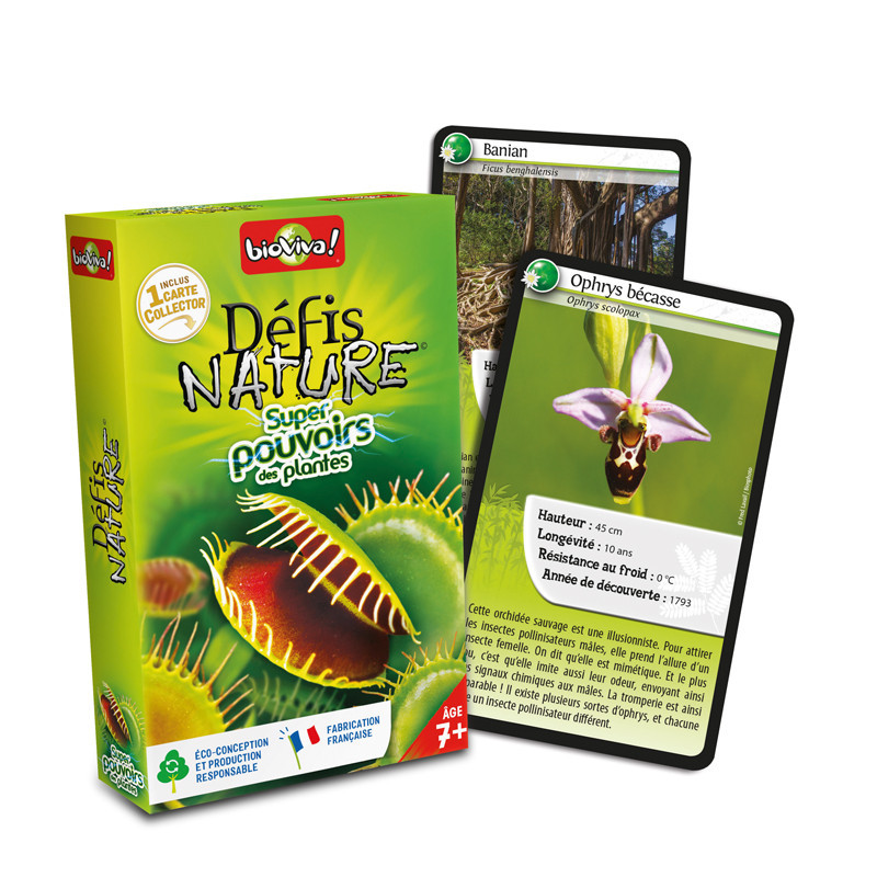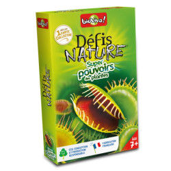 Défis Nature vous emmène à la rencontre des animaux et de la planète. L’objectif de ce jeu est de découvrir les caractéristiques des animaux, puis de parier sur leurs points forts pour remporter la partie. Les cartes peuvent également être utilisées pour illustrer un cours de sciences naturelles ou de géographie.