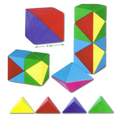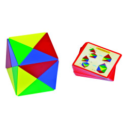 Le cube se compose de 24 triangles magnétiques. Les cartes de modèles présentent comment construire des corps simples à compliqués. Matière : plastique.