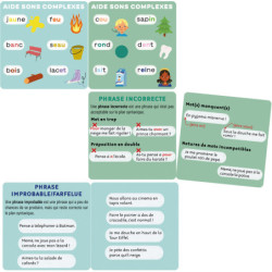 But du jeu : jeu de rapidité pour trouver des mots selon un thème et une lettre. Chaque joueur à son tour retourne une carte de la pioche. Une carte indique le thème et la couleur et une autre carte indique la lettre. Le premier à trouver un mot de la bonne lettre dans le bon thème gagne. Intérêt pédagogique : rapidité, vocabulaire.Contenu : 60 cartes réversibles (60 faces thèmes pour 10 thèmes différents / 60 faces lettres) et la règle illustrée 2 à 6 joueurs - Durée : 10 min