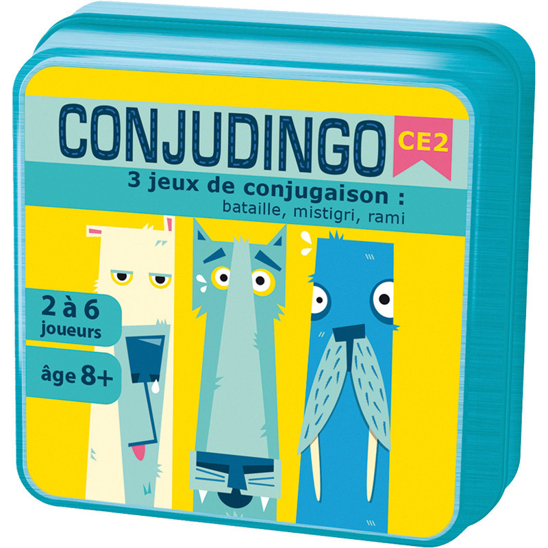 But du jeu : pour conjuguer au présent, au passé-composé et au futur. On doit associer 2 cartes qui conjuguent un verbe avec une orthographe correcte.Contenu : 107 cartes réversibles, règles et rappel des conjugaisons 2 à 6 joueurs - Durée : 10 min