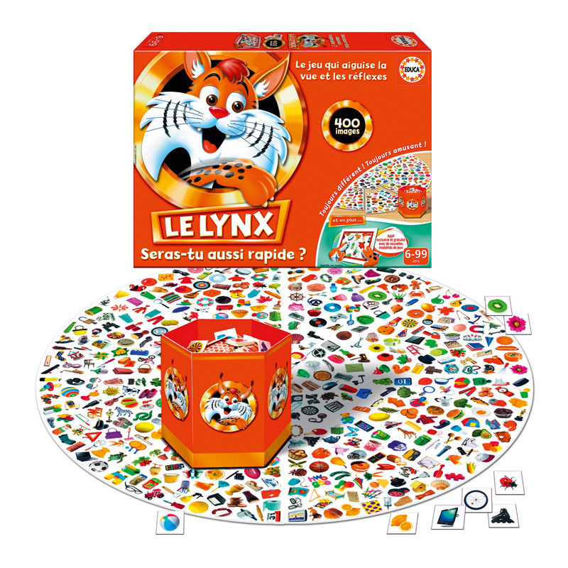 But du jeu : retrouver le plus rapidement possible les images sur le plateau de jeu. Intérêt pédagogique : rapidité et mémoire visuelle.Contenu : 1 plateau de jeu, 304 cartes, 18 jetons de 6 couleurs et 1 boîte à monter 2 à 6 joueurs - Durée : 20 min