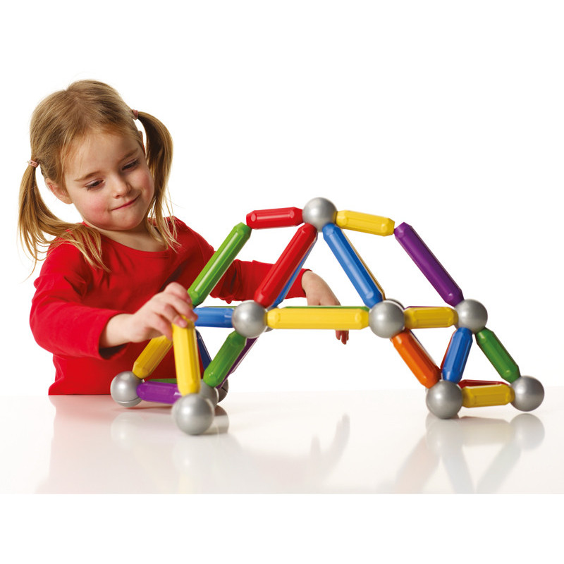 Stimule et développe l’imagination, la créativité, la logique et les aptitudes manuelles, tout en facilitant la compréhension des notions complexes de la physique, comme la création de champs magnétiques et les forces d’attraction et de répulsion grâce aux aimants placés à leurs deux extrémités, les barrettes se connectent aux sphères, vous permettant de construire tout ce qui vous passe par la tête, la gamme Geomag panels permet de renforcer les constructions pour aller encore plus loin dans la