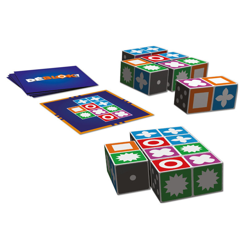 But du jeu : chaque joueur dispose des 5 mêmes pièces numérotées de 1 à 5. On retourne une carte dé et tous les joueurs en même temps essaient de réaliser la même figure avec leurs pièces. 5 niveaux de difficultés. Intérêt pédagogique : logique, rapidité et observation.Contenu : 20 blocs de couleur comprenant chacun 10 motifs, 60 cartes défis, 1 règle classique et variante expert 1 à 4 joueurs - Durée : 20 min