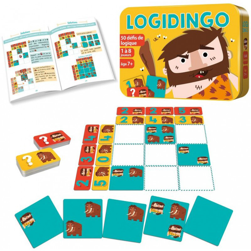 But du jeu : découvrer les filons d'or à l'aide du mineur.Contenu : 1 livret support de jeu (16 x 16 cm) qui se ferme avec une pression, 7 pièces de jeu translucides et magnétiques, 2 livrets accrochés au jeu (48 défis et solutions pour 4 niveaux différents), règle écrite à l'intérieur du livret1 joueur