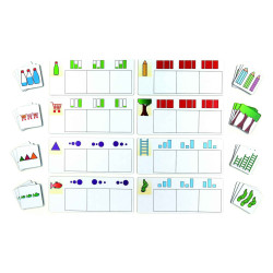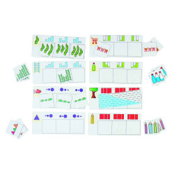 Développer les capacités de sérialisation en utilisant des concepts, a?n d’améliorer la connaissance conceptuelle. Les concepts court-long, large-étroit, pleinvide, petit-grand ont été visualisés de deux manières di?érentes. Les enfants prennent une carte de mission et trois petites cartes correspondantes. Ils devront combiner le même ordre.