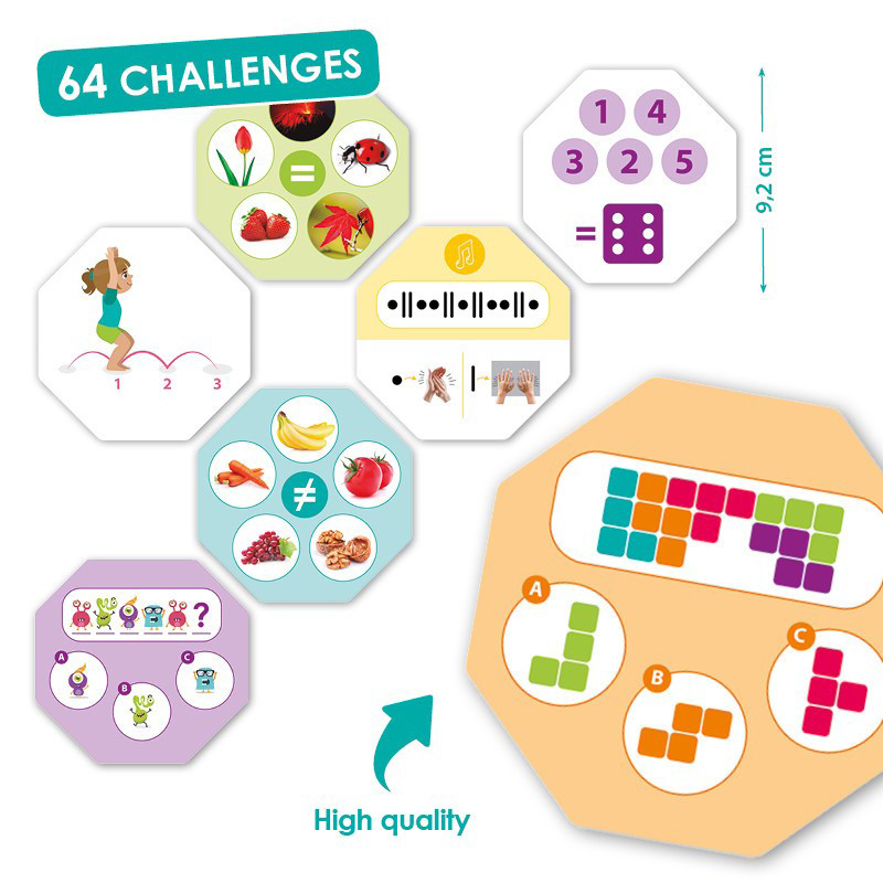 Un jeu de cartes inclusives en carton qui permet aux enfants d'apprendre facilement et de manière ludique les chiffres. Pour faciliter l'inclusion de tous ce jeu propose 10 cartes avec les chiffres ainsi que leur retranscription en langue des signes françaises et en braille. Les enfants pourront jouer tous ensemble avec ces cartes qu'ils aient un trouble visuel, un trouble auditif ou aucun trouble. Dim. d'une carte (L x h) : 8,5 x 5,5 cm.Contenu : 10 cartes