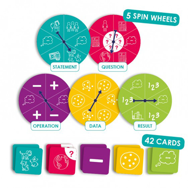 Cartes pour développer le sens mathématique et comprendre les nombres jusqu’à 10. Permettent de travailler intuitivement : la composition, la décomposition, l’égalité, l’équivalence, l’addition et la soustraction. Stimulent l’émotion, la créativité, le raisonnement et le calcul, base du développement de la pensée numérique et mathématique.Contenu : 62 cartes et 2 guides