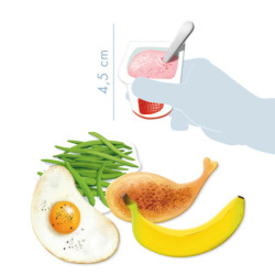Les 5 ustensiles basiques de la cuisine pensés spécialement pour les petits chefs. Têtes en silicone, résistant aux températures élevées. Manches en bambou, une matière naturelle qui ne conduit pas la chaleur.Contenu : 1 fouet, 1 spatule, 1 maryse, 1 pinceau et 1 cuillère